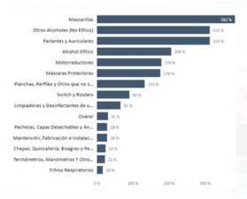 Dentro de las transacciones que han realizado estas empresas, la compra y venta en la categoría de higiene y sanitización ha tenido un gran aumento. A modo de ejemplo, en el caso de los elementos de protección personal (EPP), se observa un incremento en la demanda de un 95%. La compra de mascarillas aumentó en un 382% y de las máscaras protectoras en un 176%.